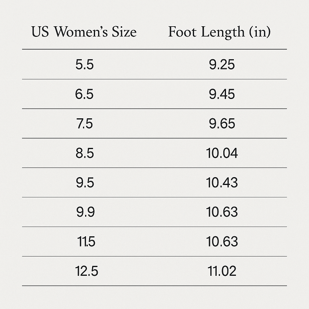 SIZE FOOT LENGTH (CM) FOOT LENGTH (IN)